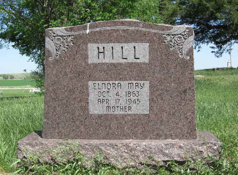 Elnora May Donham was born on 4 October 1863 at Louisa, Iowa.1 She married William Muratt Hill, son of Andrew Hill and Nancy Hawthorne, on 17 June 1885 at Arcadia, Valley, Nebraska.1 Elnora May Donham died on 17 April 1945 at Arcadia, Valley, Nebraska, at age 81.1 She was buried on 20 April 1945 at Arcadia Cemetery, Arcadia, Valley, Nebraska.1