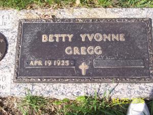 Betty Yvonne Thompson was born on 19 April 1925 at Lancaster, Lancaster County, Pennsylvania.3,4 She married Truman Chester Gregg, son of Jefferson Davis Gregg and Mary Emma Troop, on 2 March 1945.5 Betty Yvonne Gregg died on 29 May 2013 at Warminster, Bucks, Pennsylvania, at age 88.4 Betty Yvonne Gregg Find-a-Grave.com ID # 111527579. She was buried on 31 May 2013 at Calvary Monument Bible Church Cemetery, Paradise, Lancaster County, Pennsylvania.4