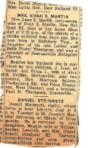 - [S67] Various Newspapers, Newspaper clipping found in Jacob G Martin Bible 9/27/2017 for Mrs Noah S Martin.