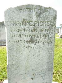 DOB: 12 Dec 1813/ DOD: 18 Sep 1881 (Source: ancestry.com family tree.2 He was buried on 17 July 1914 at Georgetown Methodist Cemetery, Georgetown, Lancaster, Pennsylvania.2 Ephraim C Pickel Find-a-Grave.com ID # 44467706 + family links.