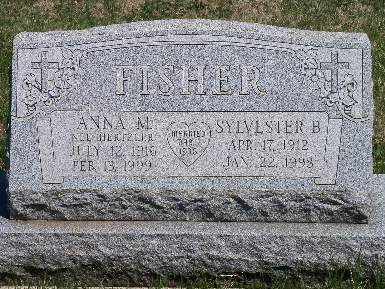 Sylvester B Fisher was born on 17 April 1912 at Salisbury Township, Lancaster, Pennsylvania.1 He married Anna M Hertzler, daughter of Joseph Hertzler and Mary Warfel, on 7 March 1936.1 Sylvester B Fisher died on 22 January 1998 at Tel-Hai Retirement Community, Honey Brook, Chester, Pennsylvania, at age 85.1 He was buried on 25 January 1998 at Millwood Mennonite Cemetery, Gap, Lancaster, Pennsylvania; Sylvester B. Fisher, 85, of Tel-Hai Retirement Community in Honey Brook, formerly of Kinzers, died at home Thursday afternoon after a brief illness.