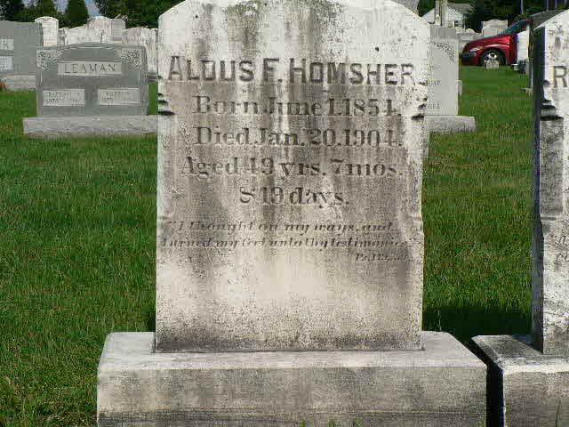- Aldus F Homsher1 b. 1 Jun 1854, d. 20 Jan 1904