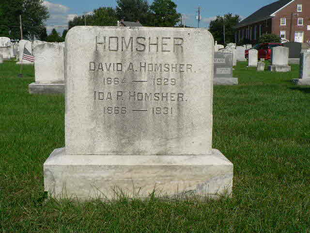 David A Homsher married Ida P Richard.1 David A Homsher was born in 1864.1 He was buried in 1929 at Strasburg Mennonite Cemetery, Strasburg, Lancaster, Pennsylvania.1 He died in 1929.1 David A Homsher Find-a-Grave.com ID # 21290807.