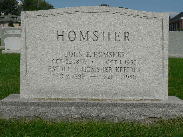 - John E Homsher1 b. 31 Oct 1890, d. 1 Oct 1955