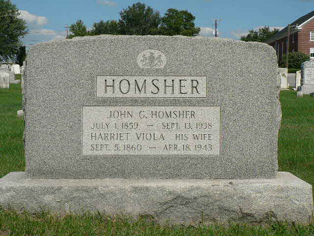 ? As of circa 1885,her married name was Homsher.1 She and John Galen Homsher appeared on the census of 6 June 1900 at West Main Strett, Strasburg, Lancaster, Pennsylvania.At time of this census, Viola had 4 children, all 4 living.3 Harriet Viola Homsher was listed as a resident in John Galen Homsher and Harriet Viola Homsher's household in the census report in 1910 at West Main St, Strasburg, Lancaster, Pennsylvania; Also in household was sister in law to John, Josie Eager, age 29 and single.4 She was listed as a resident in John Galen Homsher and Harriet Viola Homsher's household in the census report in 1920 at West Main St, Strasburg, Lancaster, Pennsylvania.5