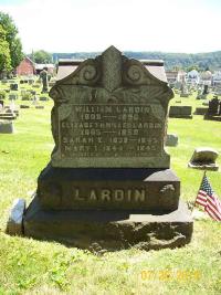 William Lardin was born on 19 May 1808 at Pennsylvania.1 He married Elizabeth Miller circa 1830.1 William Lardin died on 24 March 1896 at Tarentum, Allegheny, Pennsylvania, at age 87.1 He was buried on 27 March 1896 at Prospect Cemetery, Brackenridge, Allegheny, Pennsylvania.1 William Lardin Find-a-Grave.com ID # 19234277, lists 10 of his children also.