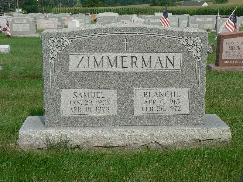 Samuel Curtis Zimmerman was born on 29 January 1909 at Lancaster, Pennsylvania.2 He married Blanche Myers before 1932.1 Samuel Curtis Zimmerman died on 18 April 1978 at Lancaster, Lancaster, Pennsylvania, at age 69.2 He was buried on 21 April 1978 at Strasburg Mennonite Cemetery, Strasburg, Lancaster, Pennsylvania.2 Samuel Curtis Zimmerman Find-a-Grave.com ID # 16342856.