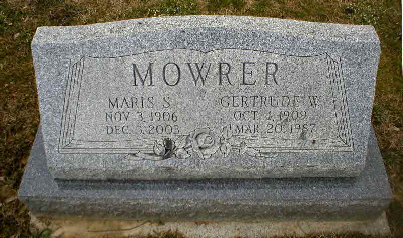 Maris S (Shorty) Mowrer was born on 3 November 1906 at Strasburg, Lancaster, Pennsylvania.1 He married Gertrude Wiggins before 1934.1 Maris S (Shorty) Mowrer died on 5 December 2003 at Willow Street, Lancaster, Pennsylvania, at age 97.1 He was buried on 8 December 2003 at New Providence Mennonite Cemetery, New Providence, Lancaster, Pennsylvania.1 Maris S (Shorty) Mowrer Find-a-Grave.com ID # 107325720.