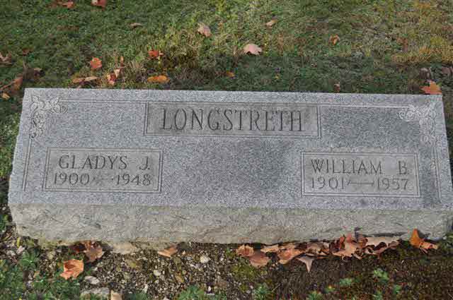 William B Longstreth married Gladys Jane Wilson.1 William B Longstreth was born on 13 March 1901 at Pennsylvania.1 He died on 13 January 1957 at Meadville, Crawford, Pennsylvania, at age 55.1 He was buried on 16 January 1957 at Redclyffe Methodisit Cemetery, Forest, Pennsylvania.1 William B Longstreth Find-a-Grave.com ID # 22254713.