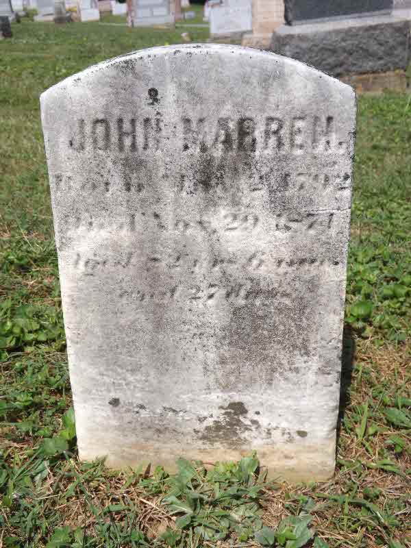 John Marren was born on 2 May 1792 at Pennsylvania.1 He married Hannah Campbell circa 1816.1 John Marren died on 29 November 1871 at Conestoga, Lancaster, Pennsylvania, at age 79.1 He was buried on 1 December 1871 at Conestoga Methodist Cenetery, Conestoga, Lancaster, Pennsylvania.1 John Marren Find-a-Grave.com ID # 70375115.