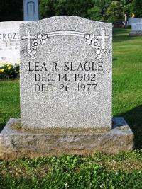 Lea Rowe Slagle was born on 14 December 1902 at Armstrong. He died on 26 December 1977 at Kittanning, Armstrong, Pennsylvania, at age 75.1 He was buried on 30 December 1977 at Kittanning Cemetery, Kittanning, Armstrong, Pennsylvania; Lea R. (Tops) Slagle 75 years old retired miner and furniture repairman of Kittaning RD 5 died at 9:59 am Monday at Armstrong County Memorial Hospital.