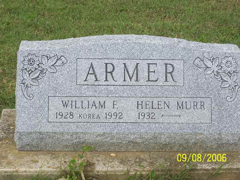 William Franklin Armer was born on 13 July 1928 at Christiana, Pennsylvania.1 He married Helen Evelyn Murr, daughter of Greydon Eugene Murr and Thelma Yvonne Reese, on 26 September 1959 at Maryland. William Franklin Armer died on 11 July 1992 at 109 N Bridge St, Christiana, Lancaster, Pennsylvania, at age 63. Autopsy ordered. His obituary read: William F.Armer, 63, of 109 N.Bridge St., Christiana, died unexpectedly at his home Saturday morning.