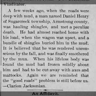 Newspaper article about his death. Shared on Ancestry by Christine Cannon-Fulton on Dec 31 2020 from Newspapers.com. Newspaper Apr 2 1896 Brookville, PA.