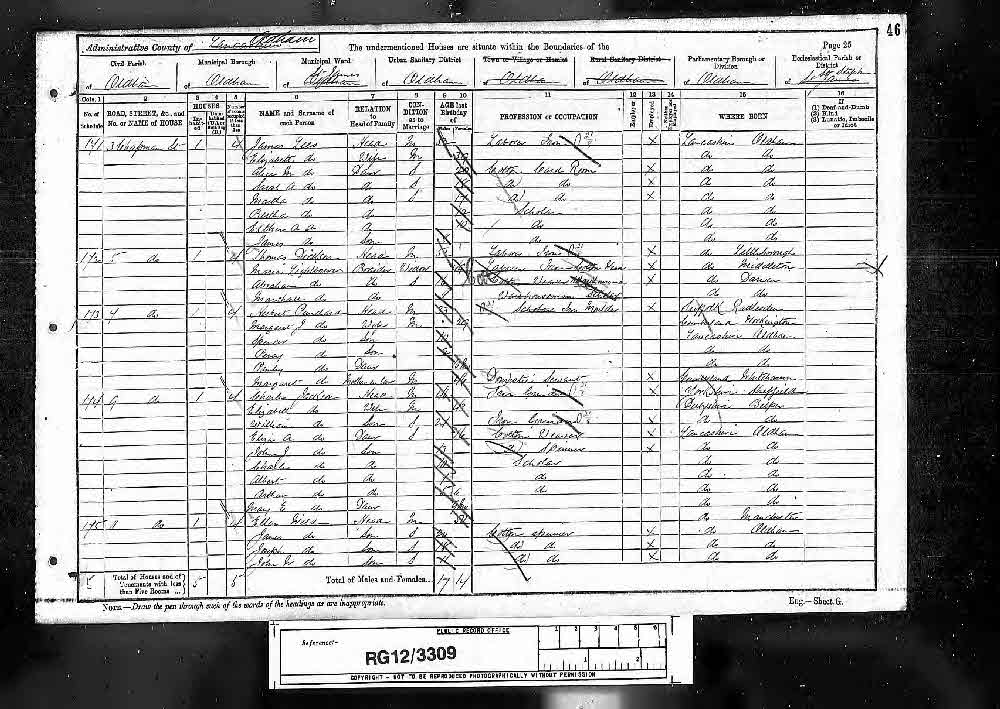 - [S312] 1891 United Kingdom Census, Lancashire, Oldham, Oldham Above Town, Dist 07, Dwelling # 174.