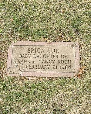 Erica Sue Koch died on 21 February 1984. She was born on 21 February 1984. She was buried on 24 February 1984 at Strasburg Cemetery, Strasburg, Lancaster, Pennsylvania.1