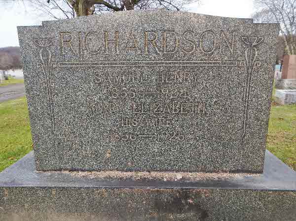 - [S126] Find-a-Grave.com Obituary, Various, Find a Grave, database and images (https://www.findagrave.com/memorial/65686577/… accessed 14 May 2022), memorial page for Samuel Henry Richardson (18 Jan 1855–20 Dec 1924), Find a Grave Memorial ID 65686577, citing Kittanning Cemetery, Kittanning, Armstrong County, Pennsylvania, USA; Maintained by Burke Stoughton (contributor 46949665).