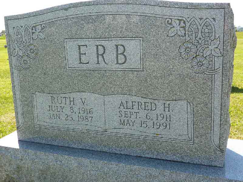 Alfred Erb was born on 6 September 1911. He married Ruth Viola Johnson, daughter of George Moses Johnson and Lelia (Selia) Williams, on 15 November 1941 at Georgetown Methodist, Bart, Pennsylvania. Alfred Erb died on 15 May 1991 at Home, Bart Twp, Pennsylvania, at age 79. He was buried on 18 May 1991 at Georgetown Methodist Cemetery, Bart, Lancaster, Pennsylvania.1 Alfred Erb Find-a-Grave.com ID # 84273479.