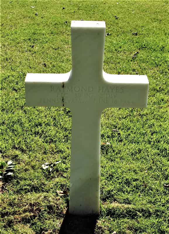 Raymond Hayes was born on 10 October 1919 at McKees Rocks, Allegheny, Pennsylvania.2 He was buried on 18 June 1944 at Normandy American Cemetery and Memorial, Colleville-sur-Mer, Departement du Calvados, Basse-Normandie, France.2 He died on 18 June 1944 at Basse-Normandie, France, at age 24; 38th Infantry Div 2nd Infantry Division.2 Raymond Hayes Find-a-Grave.com ID # 166949415.