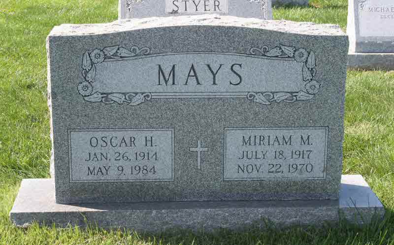 Family | Oscar H Mays b. 26 Jan 1914, d. 9 May 1984 |