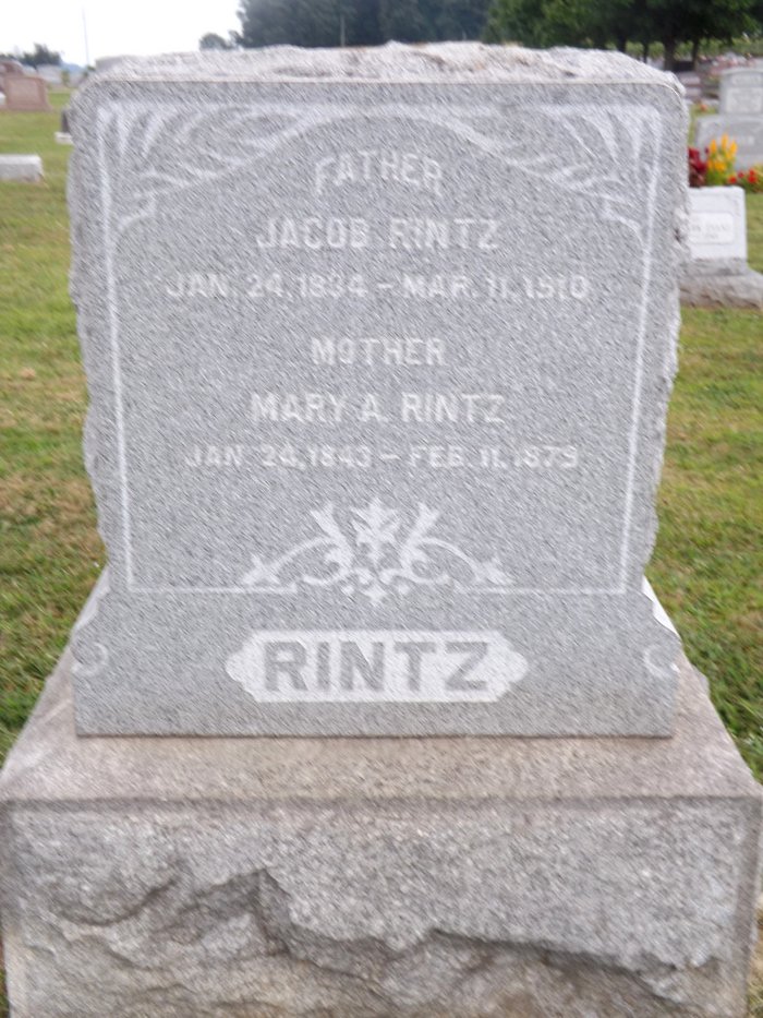 - Rebecca Janette Rintz b. 10 Oct 1864, d. 4 Oct 1931
