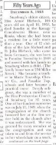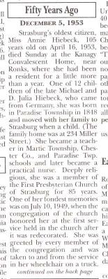 William S. Heibeck was born on 31 July 1870 at Strasburg, Lancaster, Pennsylvania.2,3 He died on 25 October 1961 at Lancaster County Hospital, Lancaster, Lancaster, Pennsylvania, at age 91. Cause of death was myocardial Infarction, Acute, duration 1 hr.4,3 He was buried on 28 October 1961 at Strasburg Mennonite Cemetery, Strasburg, Lancaster, Pennsylvania; Section C, Row 5, stone 25.4,3