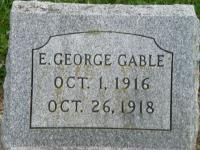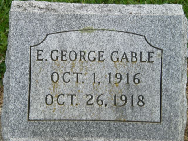 Edgar George Gable was born on 1 October 1916.1 He died on 26 October 1918 at age 2.1 He was buried on 29 October 1918 at Pequea Presbyterian, Lancaster, Pennsylvania.1 Edgar George Gable Find-a-Grave.com ID # 40656569.1