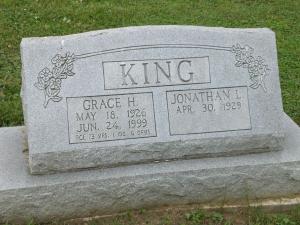 Grace Burkhart was born on 18 May 1926 at Bowmansville, Lancaster County, Pennsylvania.1 She married Jonathan King on 18 March 1959.1 Grace Burkhart died on 24 June 1999 at at home, 116 S. Ronks Rd, Ronks, Pennsylvania, at age 73.1 She was buried on 28 June 1999 at St. John's United Methodist Cemetery, Paradise, Pennsylvania.1 Grace Burkhart Find-a-Grave.com ID # 53494322.2