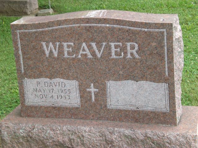 R. David Weaver was born on 17 May 1955. He married Sandra Lynn Rapp, daughter of Everett M Rapp and Thelma Helm, on 7 August 1981. R. David Weaver died on 4 November 1983 at age 28. He was buried on 7 November 1983 at St John's United Methodist Cemetery, Paradise, Lancaster, Pennsylvania.1 R. David Weaver Find-a-Grave.com ID # 53442355.1