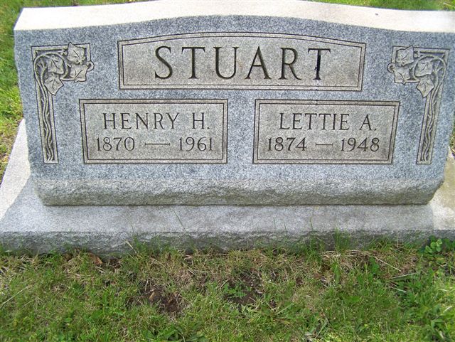 Henry Harrison Stuart was born in 1870.1 He married Letitia Ann Morrow, daughter of David W. Morrow and Susannah Hays, on 6 July 1899 at Kittanning, Armstrong, Pennsylvania.2,3 Henry Harrison Stuart was buried on 29 January 1961 at Limestone Church of God, Adrian, Armstrong, Pennsylvania.2,1 Henry Harrison Stuart Find-a-Grave.com ID # 26995314.