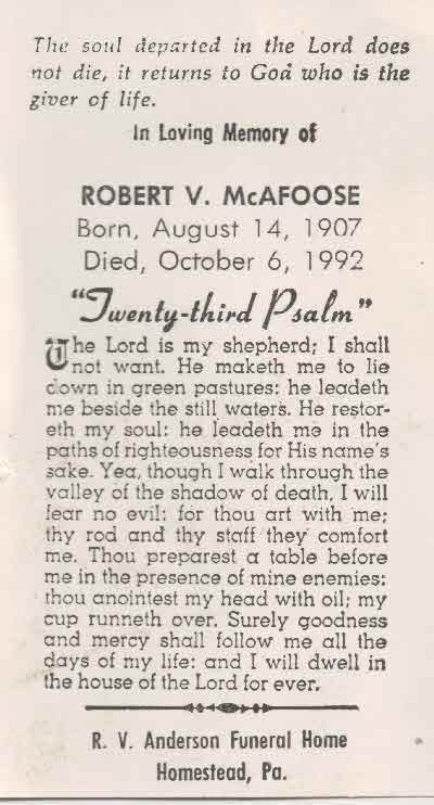 The body is being brought here today to the O C Brown mortuary. The funeral Service will be held Sunday afternoon at Red Bank, PA and interment will be made in the cemetery there.