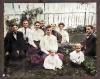 Photo of Myrtle Rapp, her chlidren and nieces and nephews. Gentleman holding baby probably father of baby.