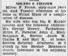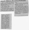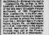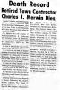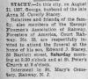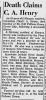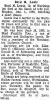 Newspaper obit: Baltimore Sun, Baltimore, Maryland, Aug 20 1958, Page 24.