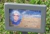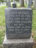 William J Williams and his wife Mary Ann Ritallick standing with stone they erected for his father in Camborne, United Kingdom.