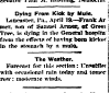 Newspaper article about his death. Shared on Ancestry by Christine Cannon-Fulton on Dec 31 2020 from Newspapers.com. Newspaper Apr 2 1896 Brookville, PA.